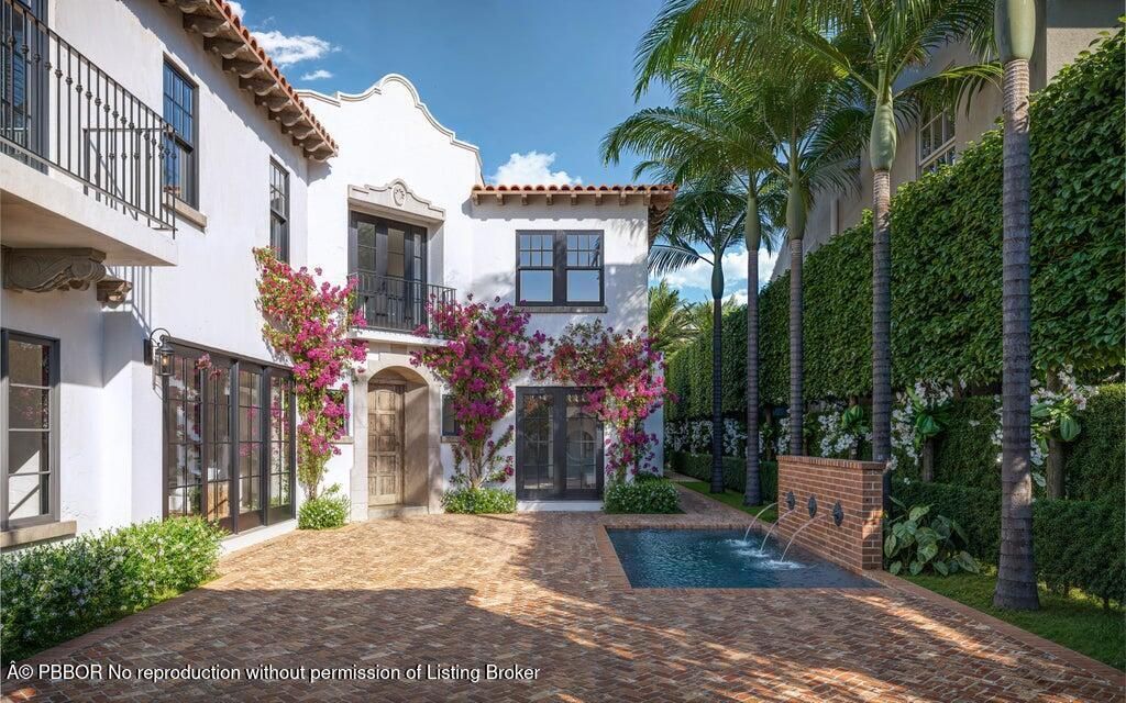 Step into a world where elegance and Spanish-Mediterranean romance come together in perfect harmony. Originally built in 1926 and masterfully reimagined with a full renovation in 2025, this architectural jewel invites you through lush, manicured landscaping into a private Chicago-brick courtyard centered around a shimmering saltwater plunge pool with a tranquil water feature, a serene introduction to the timeless beauty within. Inside, the foyer welcomes you with a signature spiral staircase. At...Step into a world where elegance and Spanish-Mediterranean romance come together in perfect harmony. Originally built in 1926 and masterfully reimagined with a full renovation in 2025, this architectural jewel invites you through lush, manicured landscaping into a private Chicago-brick courtyard centered around a shimmering saltwater plunge pool with a tranquil water feature, a serene introduction to the timeless beauty within. Inside, the foyer welcomes you with a signature spiral staircase. At the focal point of the formal living room an original wood burning fireplace and expansive sliders that frame the courtyard and bathe the interiors in natural light. Adjacent, a warm and intimate den/office offers a quiet retreat. The formal dining room is a masterpiece of craftsmanship, featuring a custom built-in banquette, wall-to-wall cabinetry with pull-out drawers, and a floor-to-ceiling wine cooler, creating a setting worthy of unforgettable evenings. The kitchen exudes timeless sophistication with marble countertops, a full slab backsplash, and a Thermador stainless-steel appliance suite, including a 6-burner gas range with griddle, an exquisite stage for the true chef. A seamless transition leads to the inviting family room and club room, both opening to the home's rear courtyard, where a summer kitchen and roll-down phantom hurricane screens set the tone for effortless indoor-outdoor living. Around the property, mature Calophyllum trees form a natural privacy hedge, enveloping each courtyard in a world of its own. Even the lanai reflects uncompromising attention to detail, showcasing Pecky cypress tongue-and-groove ceilings that add texture, warmth, and architectural soul. A versatile bonus/storage room provides additional custom cabinetry, workspace, laminate floors, and a mini-split system, accessible from both the summer kitchen and side courtyard. Ascending to the second floor, you'll find four beautifully appointed ensuite bedrooms, each with its own palette of mosaic and marble tile selections, giving every space a unique sense of artistry and refinement. A charming sitting room/loft with a private balcony completes the upstairs haven, an intimate perch overlooking the estate's tranquil courtyards. The primary suite is a true retreat with an oversized private balcony, spa inspired bathroom and a custom walk-in closet. This redesigned 1926 treasure is more than a home; it is an escape into another world, where history, craftsmanship, and Mediterranean romance blend into an unforgettable living experience. Perfectly positioned within walking distance of Flagler Drive and the Intracoastal Waterway, this home offers a rare opportunity to own a piece of West Palm Beach history reborn for todays lifestyle.